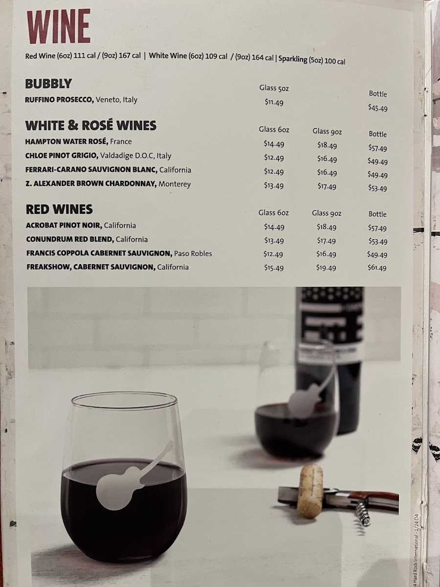 Hard Rock Cafe Menu